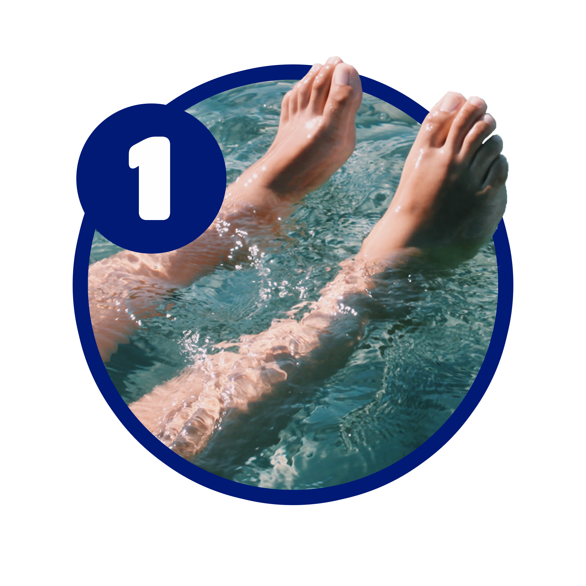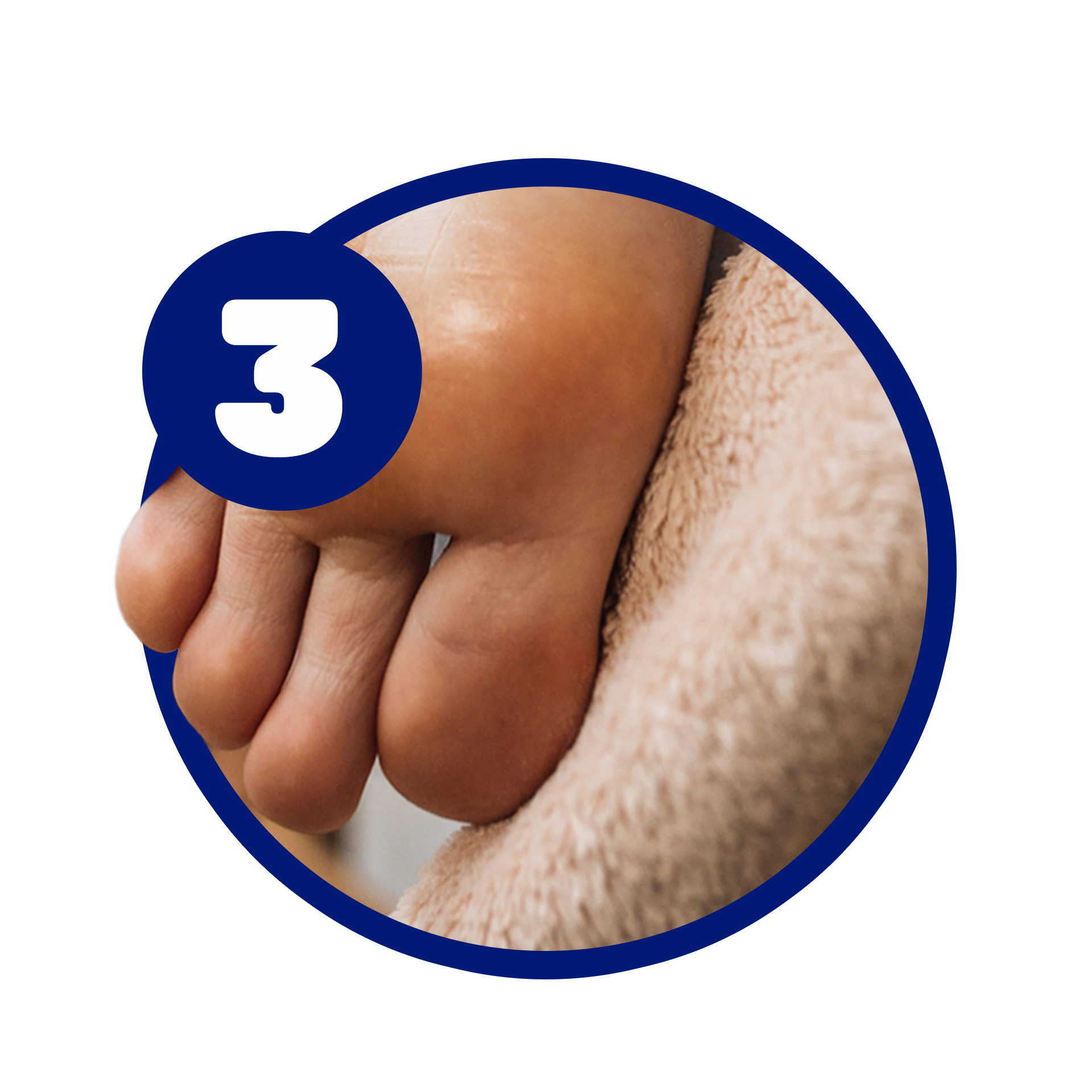 Start your footcare routine by soaking feet in warm water. This will allow for a more effective removal of hard/dry skin. Remember to pat them dry before filing.